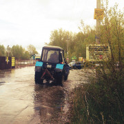 Пригодился и трактор: «Белорусом» вытаскивали из колеи автобус с тридцатью пенсионерами. До последнего они держались, но под напором стихии решились на эвакуацию.