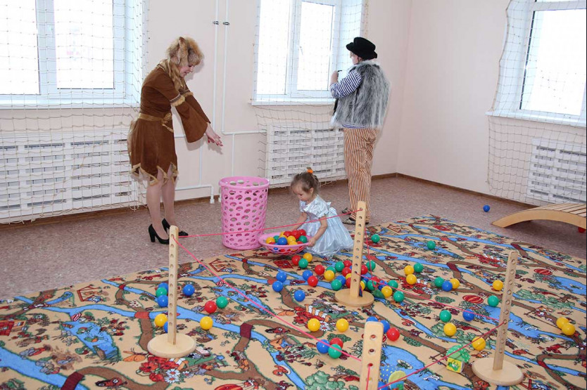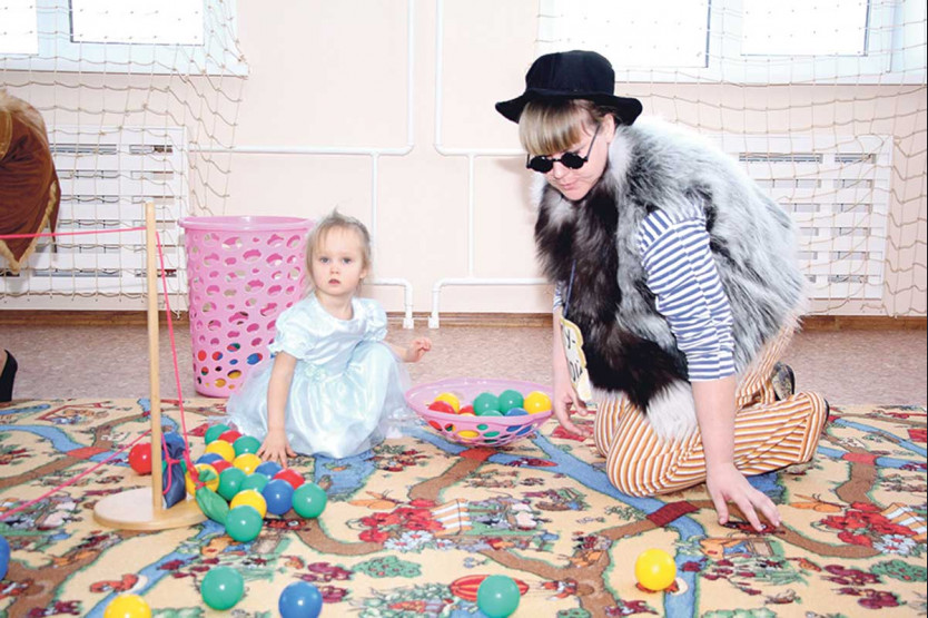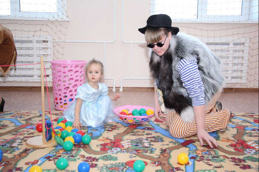 Маленькая Лера скоро найдет друзей в «Золотом ключике», а пока тестирует новые игрушки вместе со своим будущим воспитателем